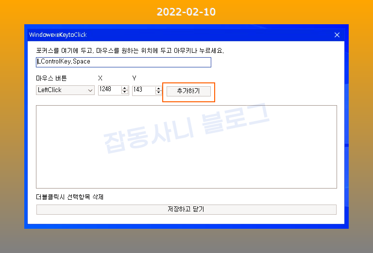같은 방법은 원하는 단축키 및 좌표를 추가하세요.