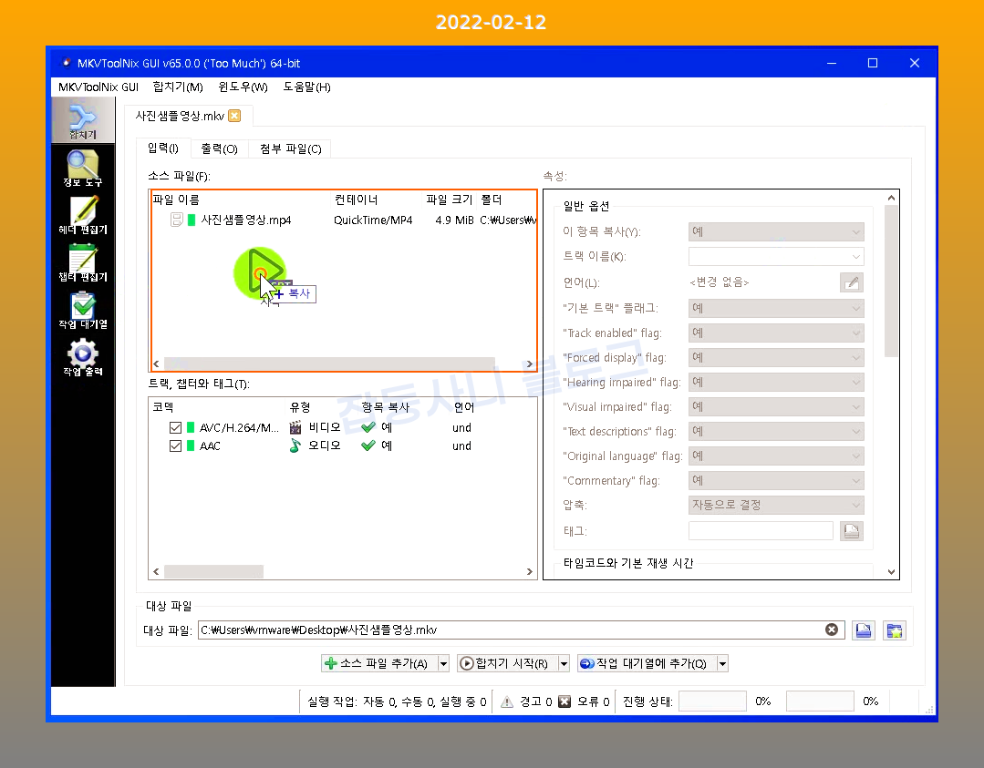 동영상 파일에 자막파일을 합치거나 동영상 파일의 자체자막을 제거할 수 있는 MKVToolNix 프로그램입니다.