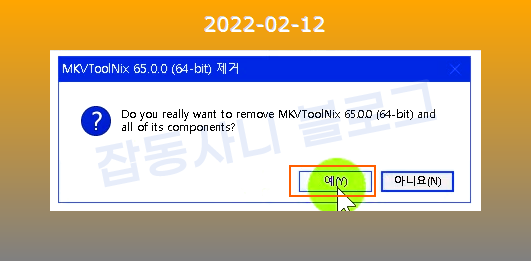 프로그램을 삭제할 건지 물어봅니다. 예를 클릭하세요.