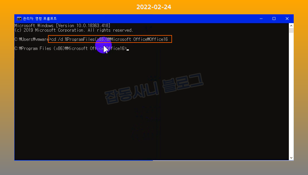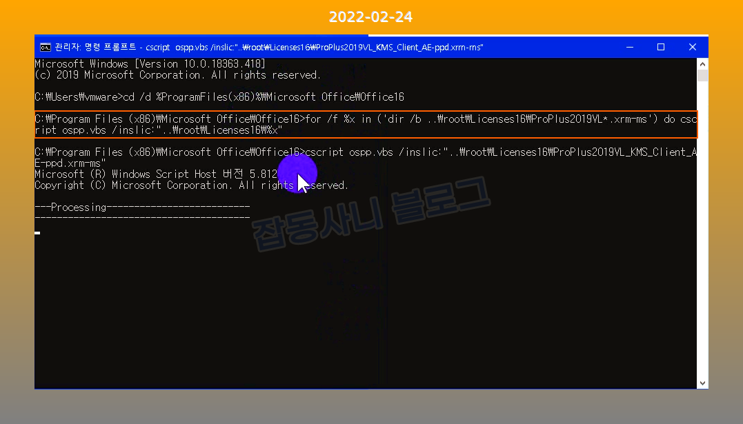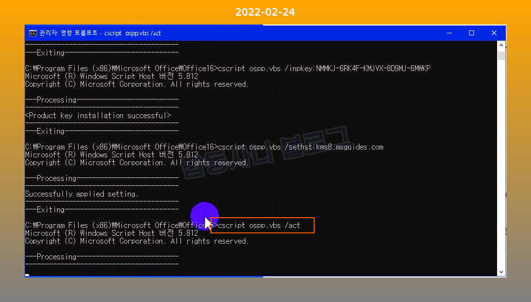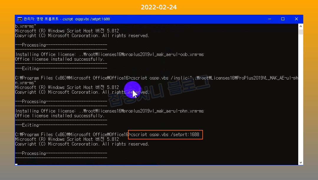 명령 프롬프트 창은 닫고, 오피스를 실행해서 인증이 되었는지 확인해보세요.