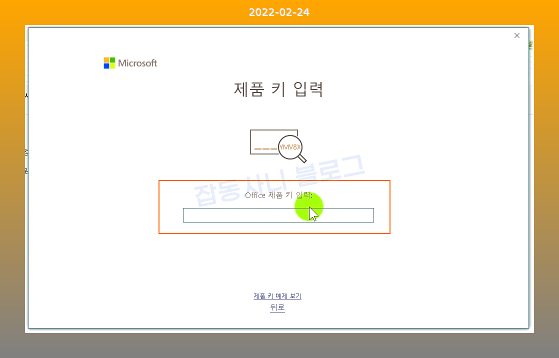 오피스를 설치후 엑셀을 실행해봤습니다. 제품 키 입력하는 화면이 나옵니다.
