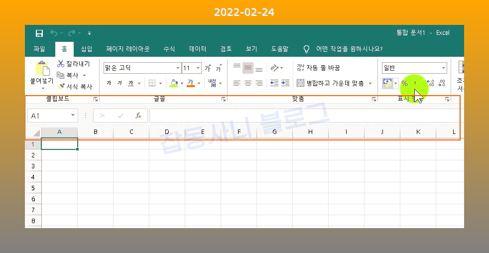 엑셀 문서를 열어봤습니다. 상단에 있던 정품 인증 메세지가 없어졌습니다.