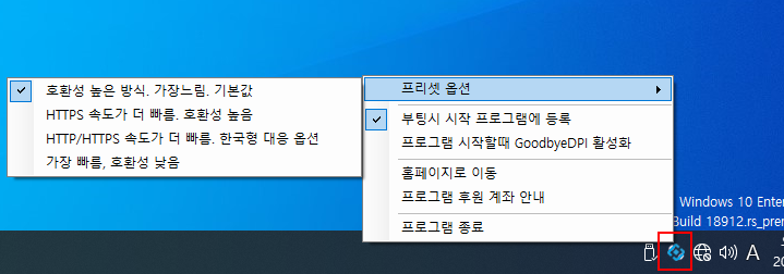 GoodbyeDPI 프로그램에서 지원하는 프리셋 파라미터 1 2 3 4 값도 설정가능합니다.