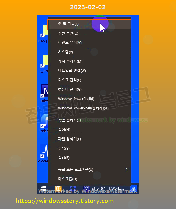 시작버튼, 마우스 우클릭, 앱 및 기능을 실행하세요.