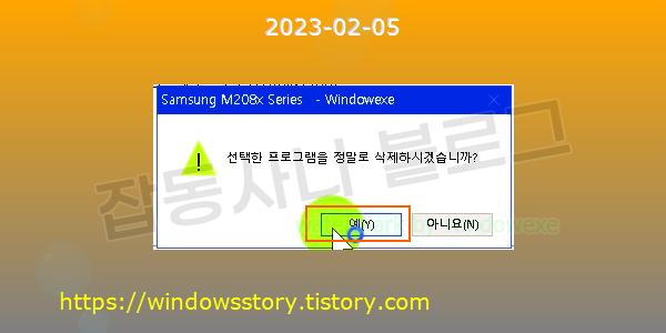 프로그램을 삭제할건지 물어보는데 예 클릭.