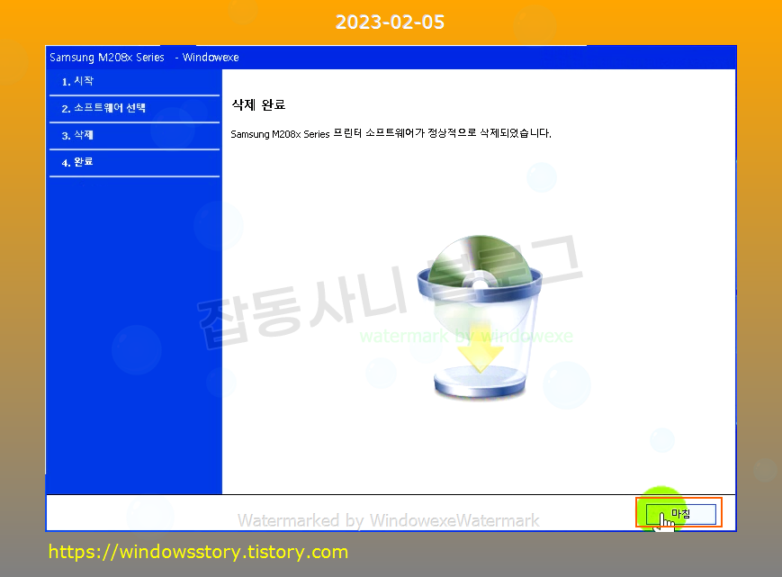 프로그램이 정상적으로 제거되었습니다. 마침 클릭.