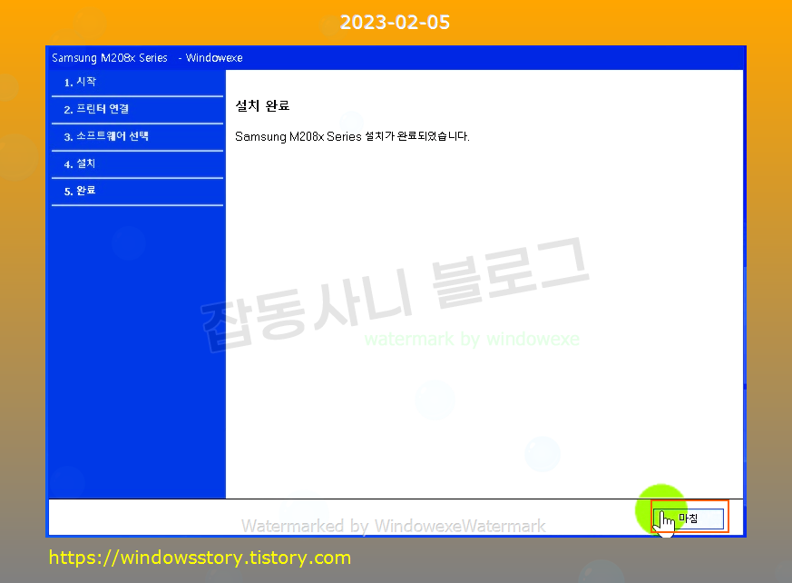 프로그램 설치가 완료되었습니다. 마침 클릭.