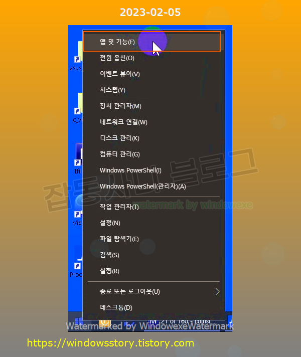 윈도우 시작 버튼에서 마우스 우클릭, 앱 및 기능을 실행하세요.