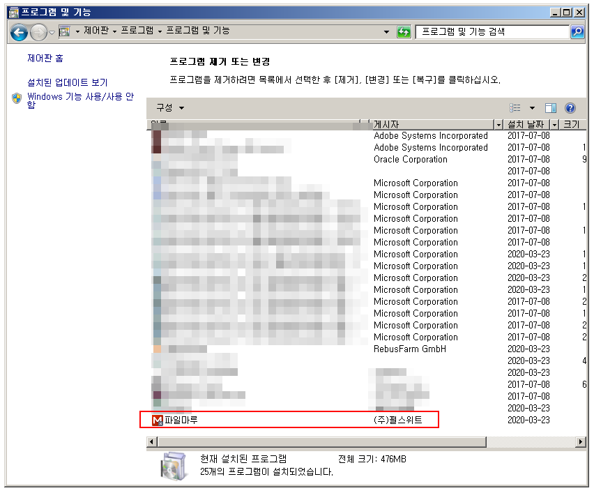 제어판 프로그램 추가/제거에 등록된 정보입니다.