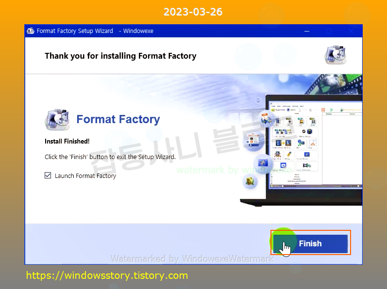 프로그램 설치가 완료되었습니다. Finish 클릭