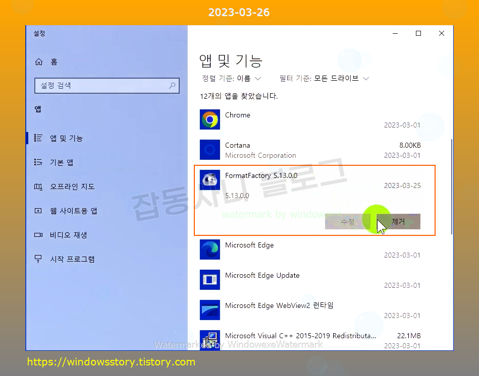 파일 경로 : C:\Program Files (x86)\FormatFactory\uninst.exe