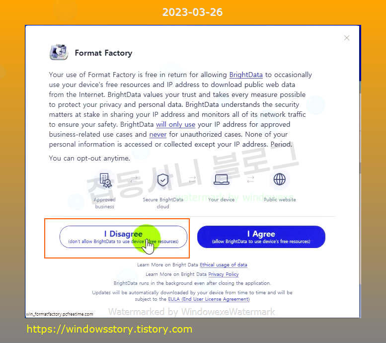 비 개인정보 수집에 관한 내용이 나오는데 I Disagree 클릭