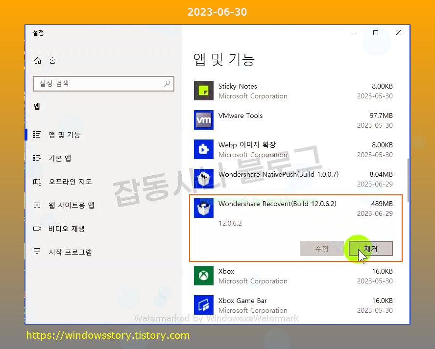 프로그램을 제거하는 방법입니다.