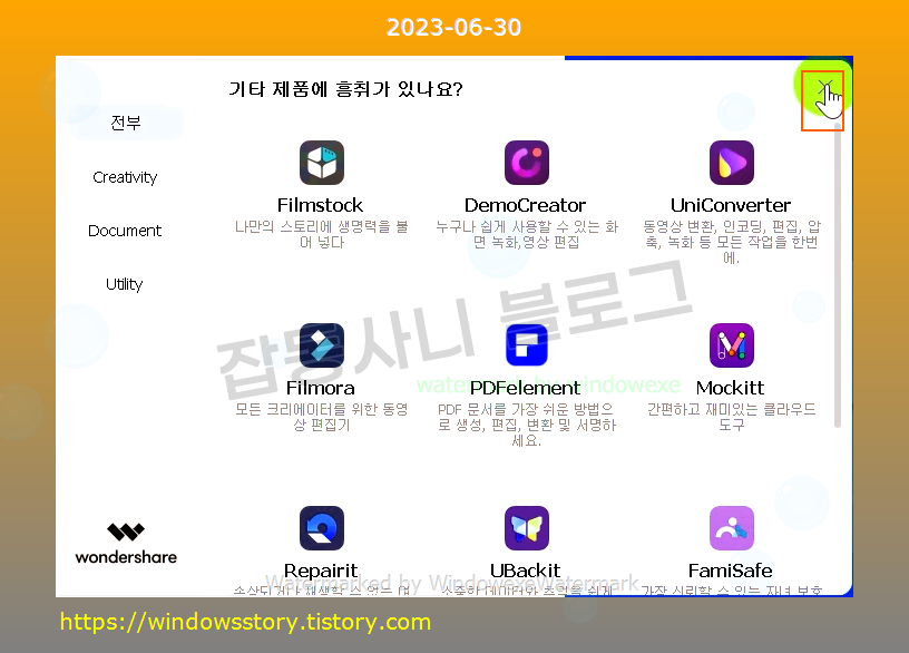 Wondershare NativePush 제거 클릭