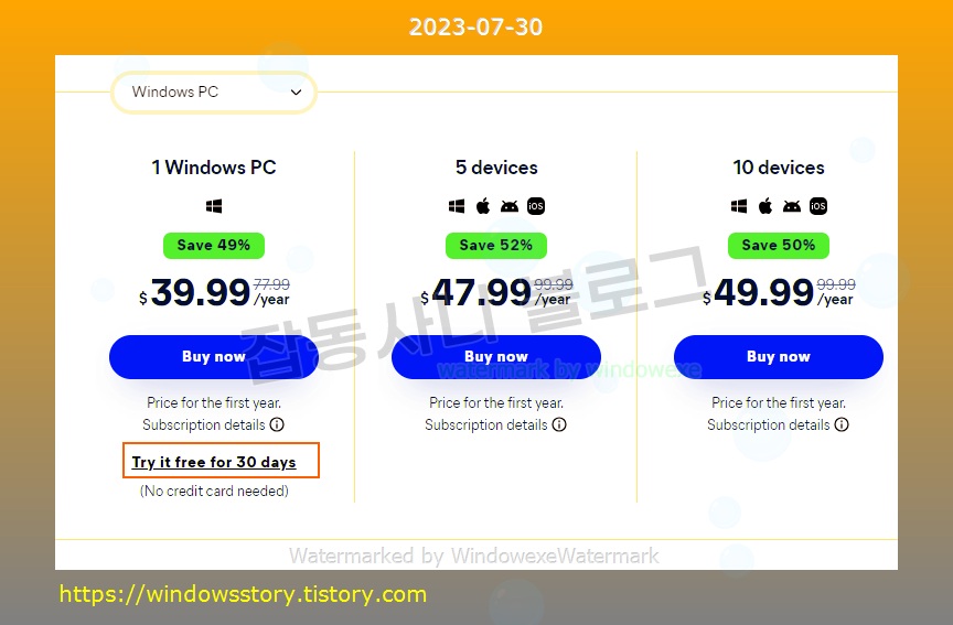위 링크로 이동해서 Try it free for 30 days 를 클릭하세요.