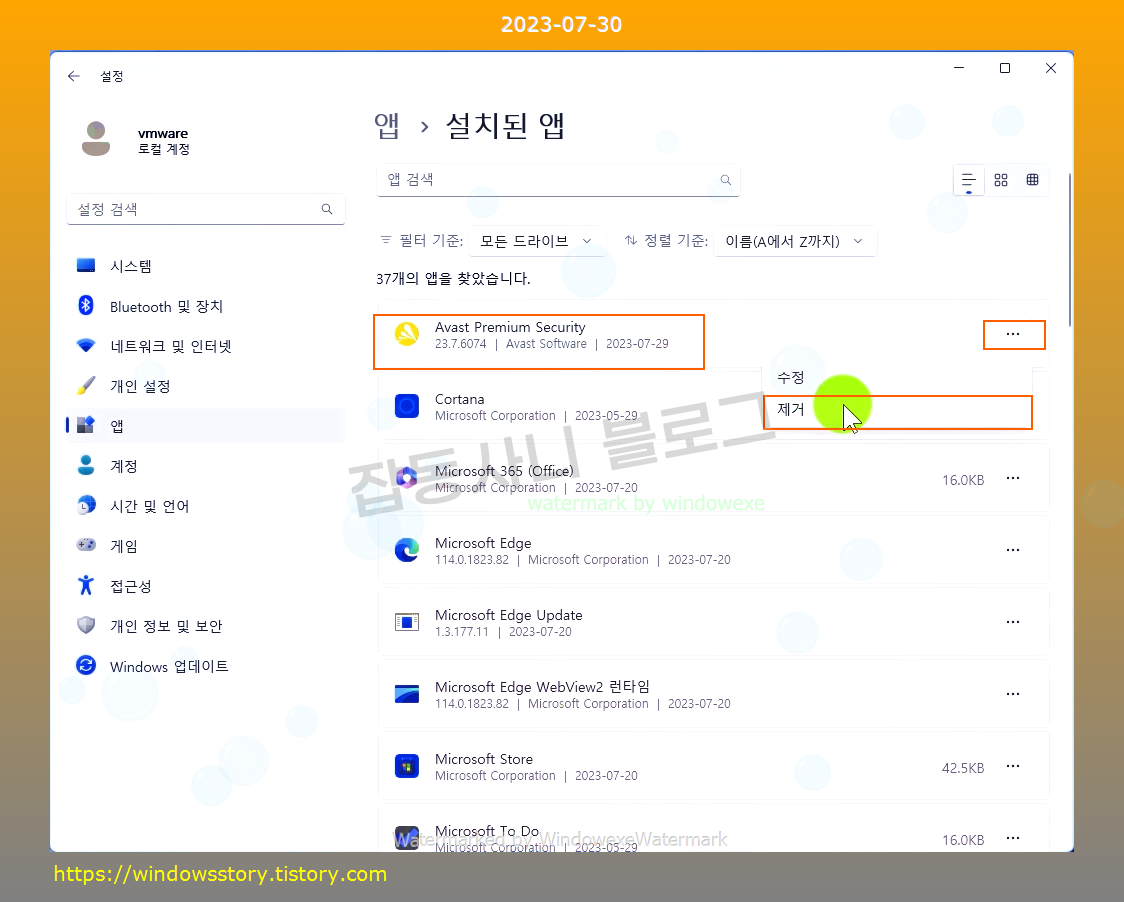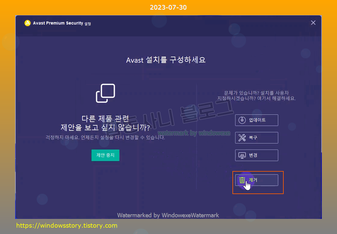 Avast Premium Security 를 찾아서 제거를 클릭하세요.