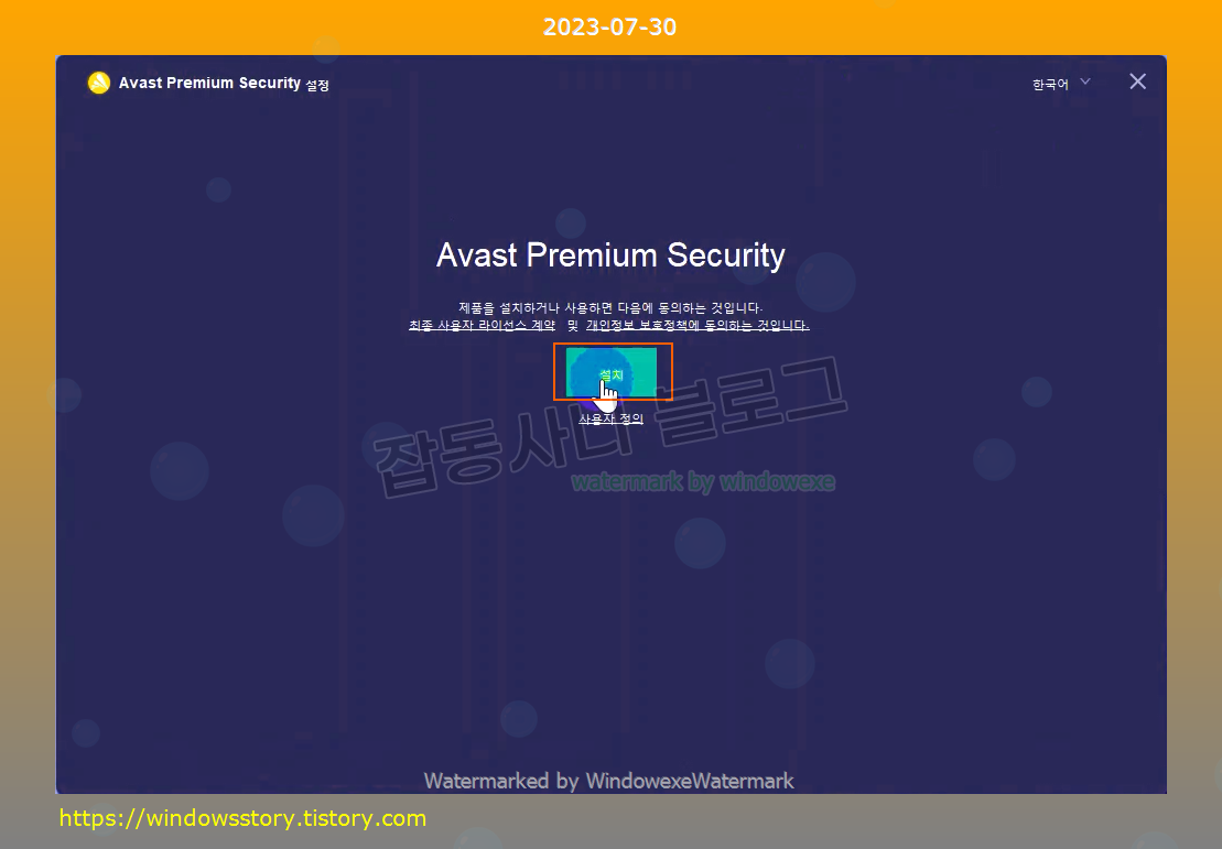 설치 클릭