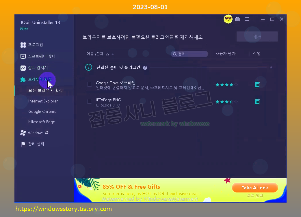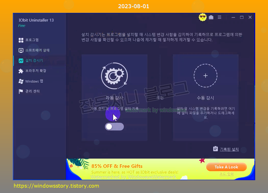 설치된 프로그램 완전 삭제, 시스템 관리, 확장 프로그램 관리, 프로그램 감시