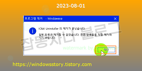 프로그램이 성공적으로 제거되었습니다. 확인을 클릭하세요.