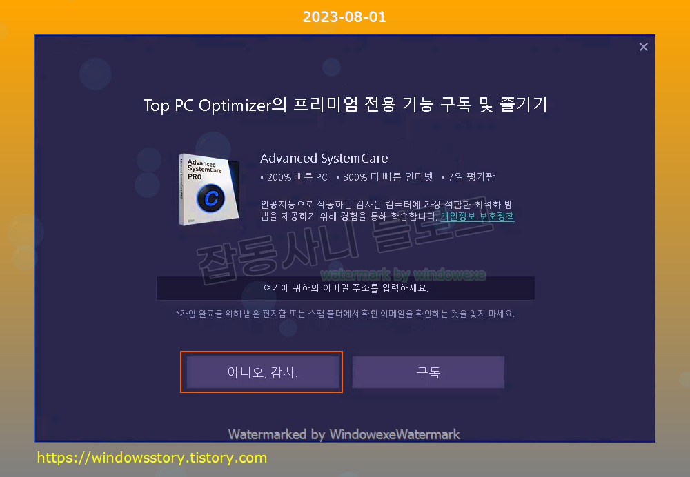 프로그램 설치가 완료되었습니다. 구독은 필요없으므로 아니오 클릭