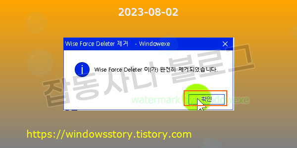 프로그램이 성공적으로 제거되었습니다. 확인을 클릭하세요.
