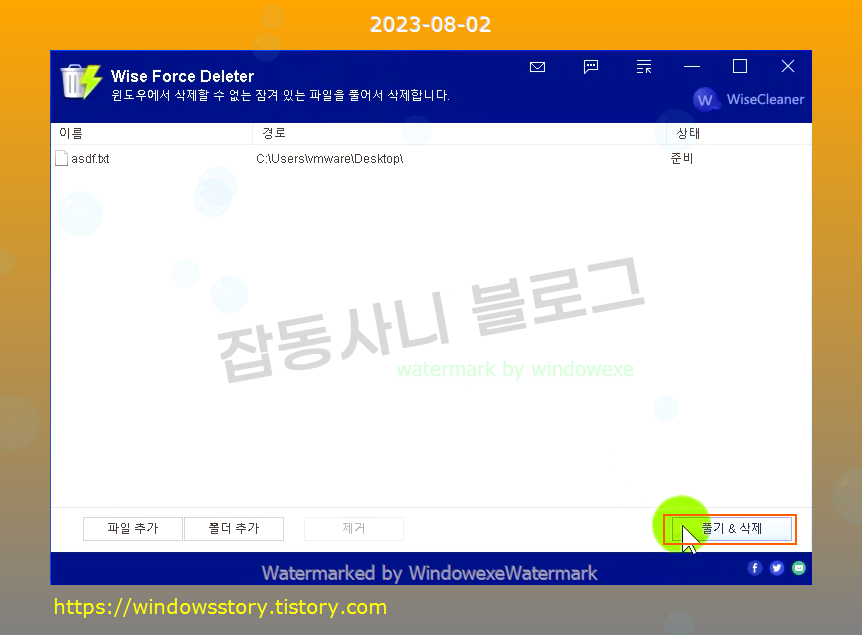 이상으로 폴더 및 파일 강제 삭제하는 프로그램 Wise Force Deleter 다운로드, 설치 및 제거 방법에 대해서 알아보았습니다.
