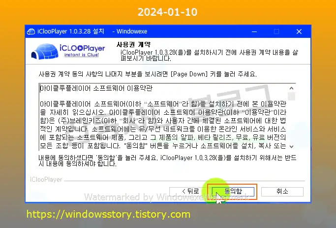 다운로드 받은 파일을 실행하면 프로그램 설치 마법사가 실행됩니다.