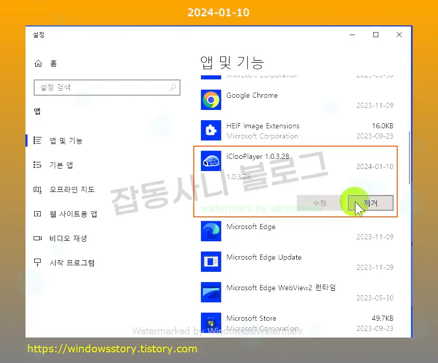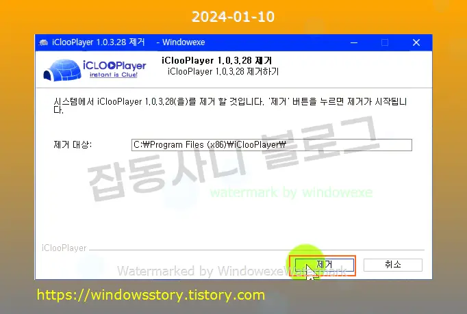 iClooPlayer 를 찾아서 제거를 클릭하세요.