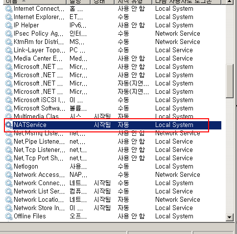 실행파일 경로 : C:\Program Files\NAT Service\natsvc.exe