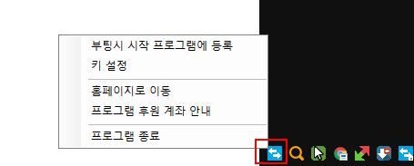 프로그램을 실행하면 시스템 트레이에 파란 아이콘이 생기는데 마우스 우클릭하고 설정을 누르세요.